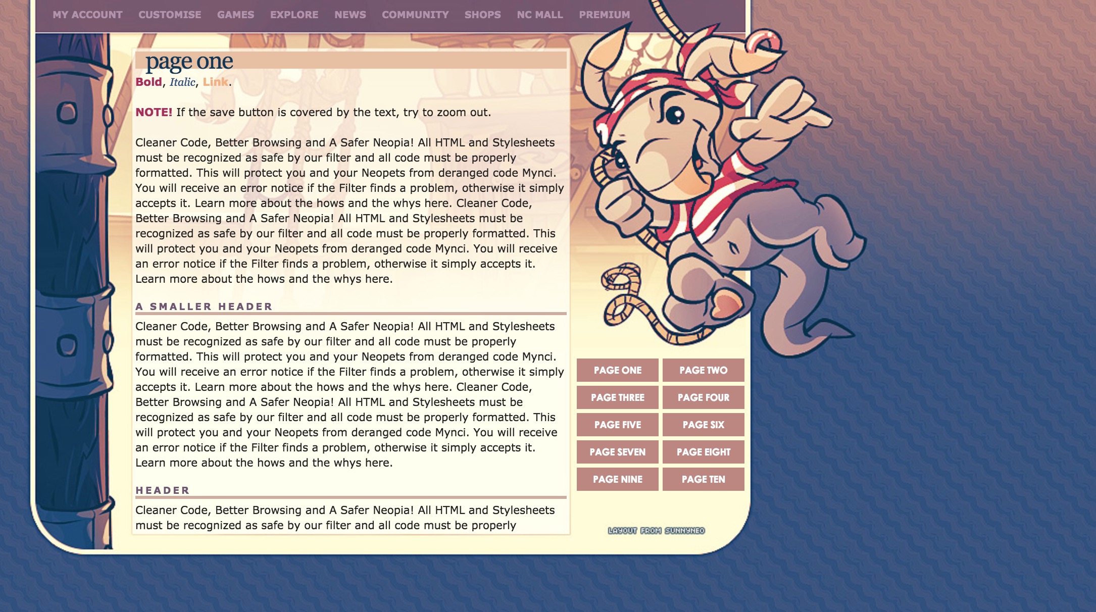 For the purposes of this guide, I’m going to separate setting into two categories, one being settings here in Neopia, and another being settings elsewhere. I’m going to try to deal with both of them as best as possible. Let’s start with Neopia.